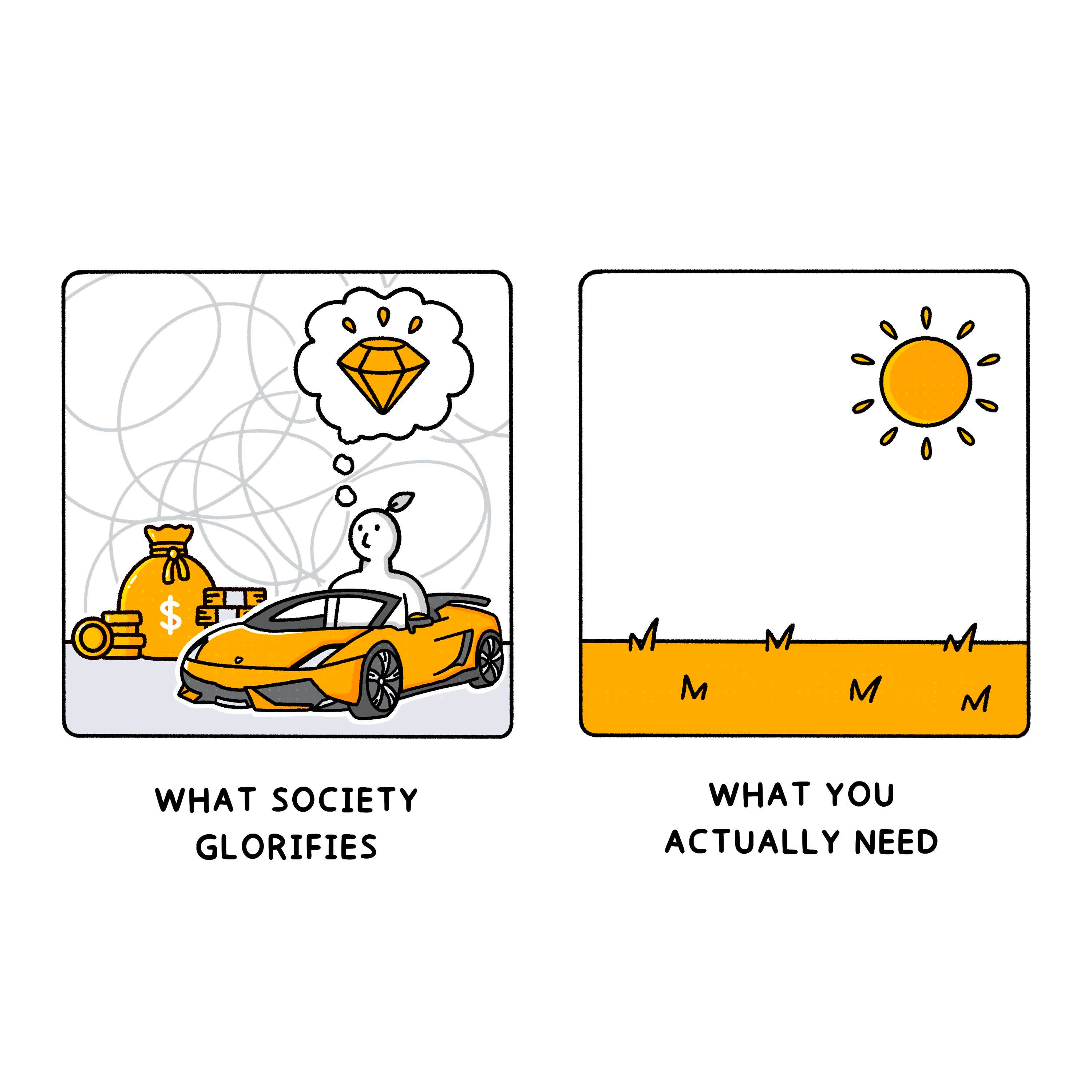 We are all humans it's human nature to need more and our desires are insatiable, it's not just cooperations trying taking advantage of it but the fact that no one and absolutely no one would like to settle for less.