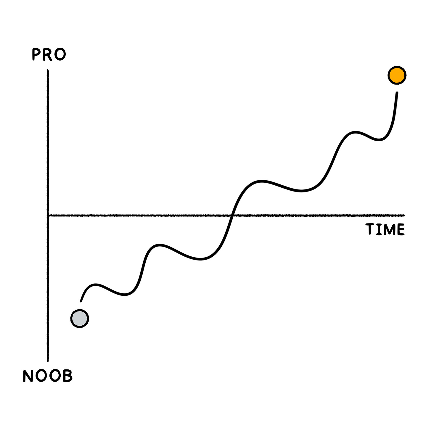 If, on the other hand, I had kept being delusional, every improvement wouldn't have counted because if you believe you're a world-class speaker and you learn to vocalize, that doesn't make sense. A world-class speaker already vocalizes well! So that improvement makes you feel bad because of the flawed expectations you have of yourself.